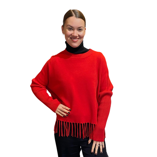 Rundhalspulli mit Fransen